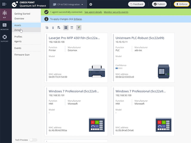 iOT365’s integrated IDS, SIEM, and SOC use multi-layer AI analysis to deliver real-time threat detection with 80–90% fewer false positives compared to solutions that rely on external SIEMs or SOCs. For any unknown or suspicious connection, iOT365 securely shares device information and metadata with Check Point Quantum IoT Protect, which enriches it with Check Point’s global threat intelligence. Customers can then choose how to respond, for Check Point to block malicious traffic at the firewall level or simply generate an alert, based on each organization’s risk tolerance and policy. This ensures maximum security without unnecessary disruption to operations.